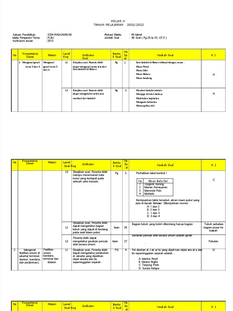 Kisi-kisi dan soal plbj kelas 3 sd semester 2